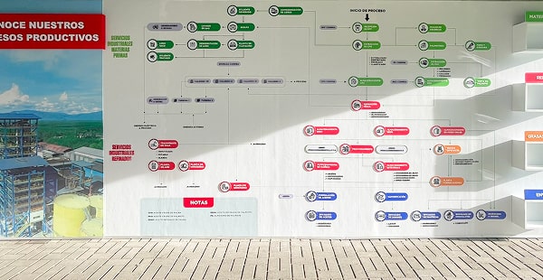 Diseño original de un recurso visual complejo (Mural corporativo, Tablero TPM, VSM de gran formato) que traduce procesos complejos a una interfaz visual.