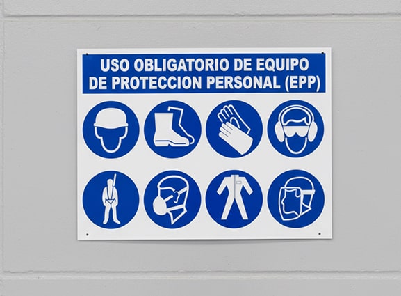 Señales diseñadas para reforzar el uso mandatorio de EPP y cumplir con procedimientos en áreas de riesgo, fabricadas en materiales industriales de alta resistencia.